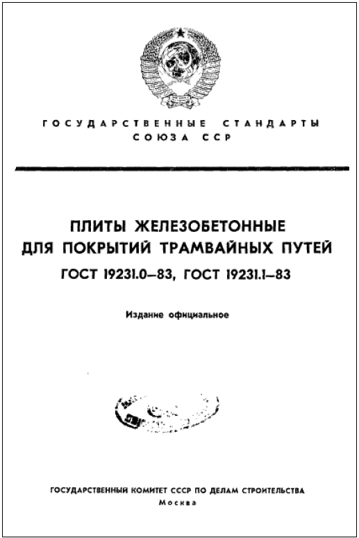 ГОСТ 19231.0(1)-83. Плиты железобетонные для покрытий трамвайных путей