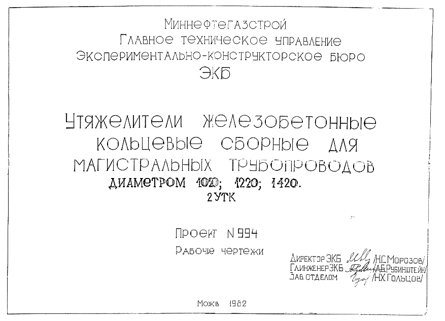 Проект №994. Утяжелители железобетонные кольцевые сборные для магистральных трубопроводов диаметром 1020.1220.1420