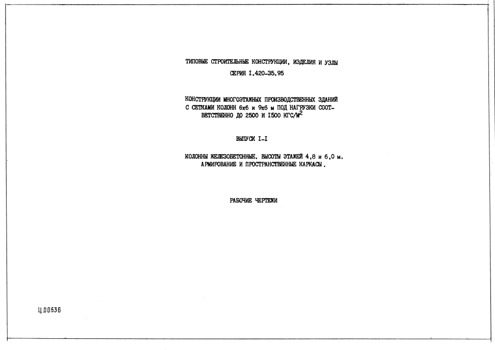 Серия 1.420-35.95. Конструкции многоэтажных производственных зданий с сетками колонн 6х6 и 9х6 м