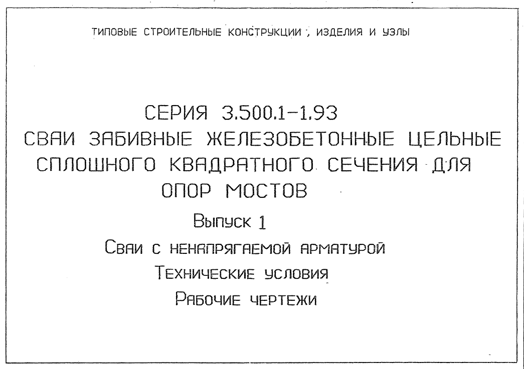 Серия 3.500.1-1.93. Сваи забивные ж/б цельные сплошного квадратного сечения для опор мостов