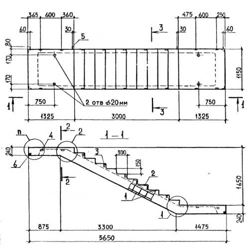 ЛМП 57.11.17 Лестничные марши ребристые с полуплощадками по серии 1.050.9-4.93.