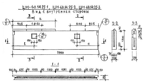 Серия 1.117-9    Панели групп ЦР1, ЦР2, ЦР4, ЦР5  толщиной 250 мм.
