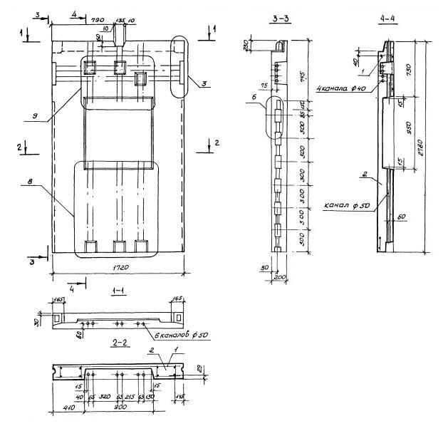 Третья группа включает индексы, обозначающие: первая цифра - вид боковой грани, определяющей примыкание электротехнических панелей к смежным конструктивным элементам (1-вертикальные боковые грани без выступов, 2 - вертикальные грани по всей высоте имеют выступ); две последующие цифры после точки - определяют толщину плиты перекрытия (в сантиметрах), для опирания которой имеется подрезка на верхней грани электротехнической панели; буквенным индексом обозначено положение ниши для электрощита по отношению к длине электротехнической панели или простенка (П-ниша справа, Л- ниша слева), при расположении ниши по центру буквенный индекс не проставляется.