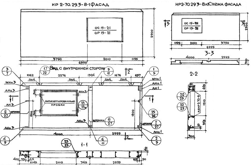 НР2-70.29.3-8л-1   Наружная стеновая панель рядовая по Серии 1.132-1.