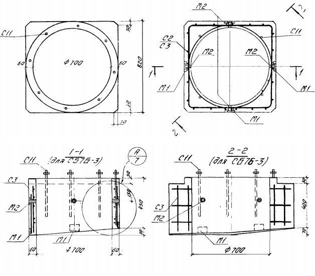СБ 7  Стаканы бетонные для монтажа дефлекторных и вентиляционных устройств в крышах одноэтажных зданий Серия 1.494-24.