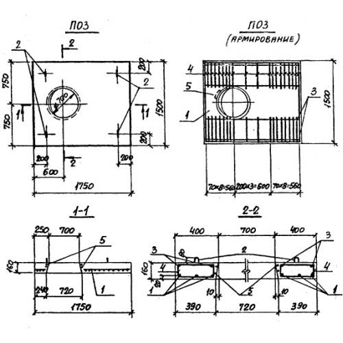 ПО 3  Плиты перекрытия лотков с отверстием Серия 3.006.1-2/82.
